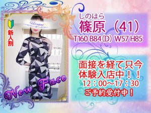 💖『篠原さん』 只今 12:00~17:30 最終受付にてドキドキ体験入店中💖