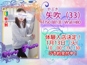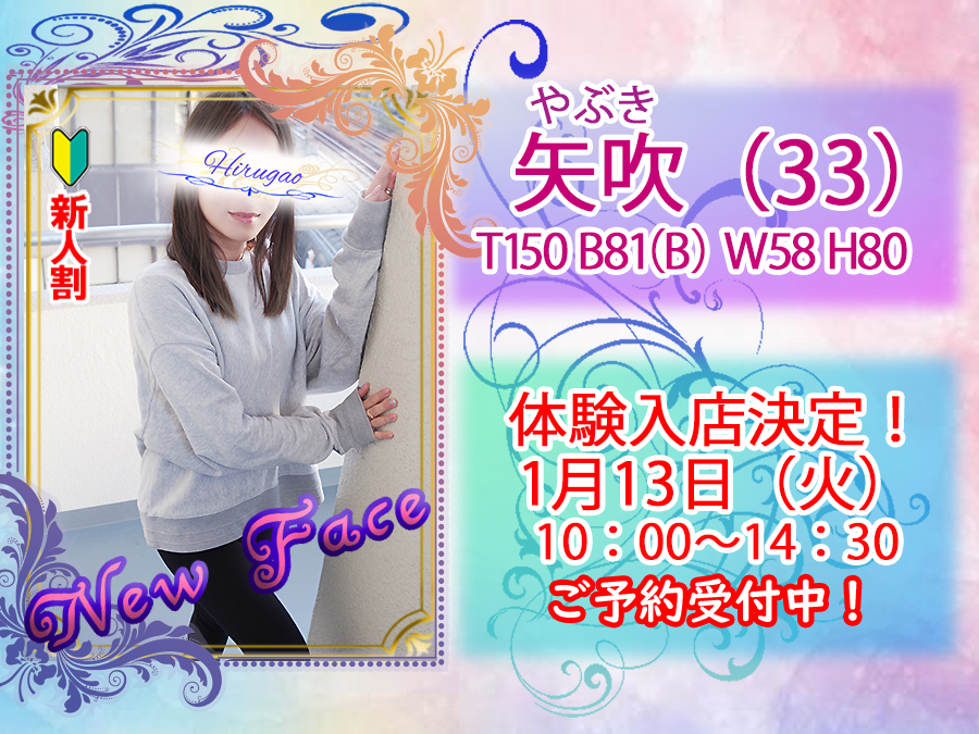 💖『矢吹さん』 13日(火)10:00~14:30 最終受付にてドキドキ体験入店決定💖