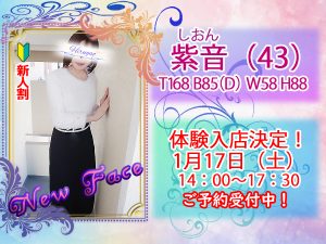 💖『紫音さん』 17日(土)14:00~17:30 最終受付にてドキドキ体験入店決定💖