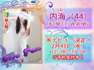 💖『内海さん』4日(水) 12:00~17:00 最終受付にてドキドキ初出勤&正式デビュー💖
