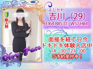 💖『吉川さん』 只今~21:00 最終受付にてドキドキ体験入店中💖