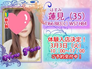 💖 『蓮見さん』 3日(火)10:00~17:00 最終受付にてドキドキ体験入店決定 💖