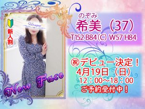 💖『希美さん』19日(日) 12:00~18:00 最終受付にてドキドキ初出勤&正式デビュー💖