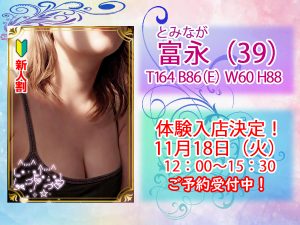 💖『富永さん』 18日(火)12:00~15:30 最終受付にてドキドキ体験入店決定💖