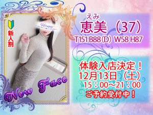 💖『恵美さん』 13日(土)15:00~21:00 最終受付にてドキドキ体験入店決定💖