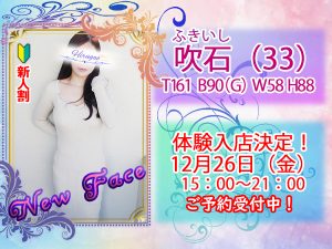 💖『吹石さん』 26日(金)15:00~21:00 最終受付にてドキドキ体験入店決定💖