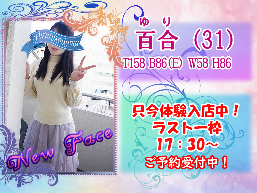 只今、ラスト1枠の奇跡的体験入店中の【百合さん】♡